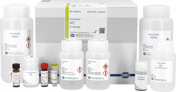 The kit is a magnetic bead-based kit for the manual or automated extraction of viral RNA/DNA and bacterial DNA from veterinary sample specimens such as serum, plasma, cell-free biological fluids, animal whole blood, tissue, swabs, milk and feces. After sample treatment, samples can be processed with the standard purification protocol.